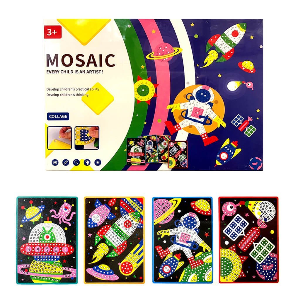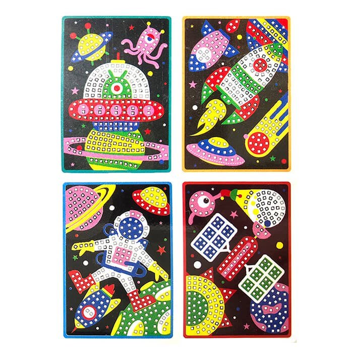 Set contains 4 9.25″ x 6.5″ pattern cards, 4 card stands & 6 sticky tile sheets with 1080 sticky tiles. Printed box.